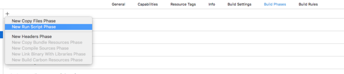 Build Phases ---> add a new Build Phases ---> New run script phase