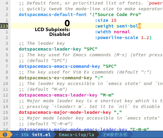 Emacs 里面不同级别的 次像素抗锯齿 渲染效果动图:LCD Font Smoothing #17