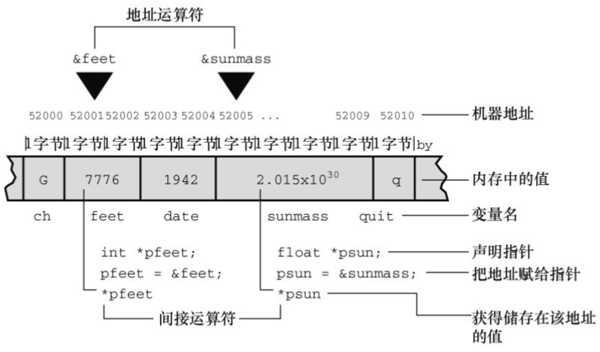 &运算符获得的派生量,而指针变量把地址作为基本量,把值作为通过*运算符获得的派生量。虽然打印地址可以满足读者好奇心,但是这并不是