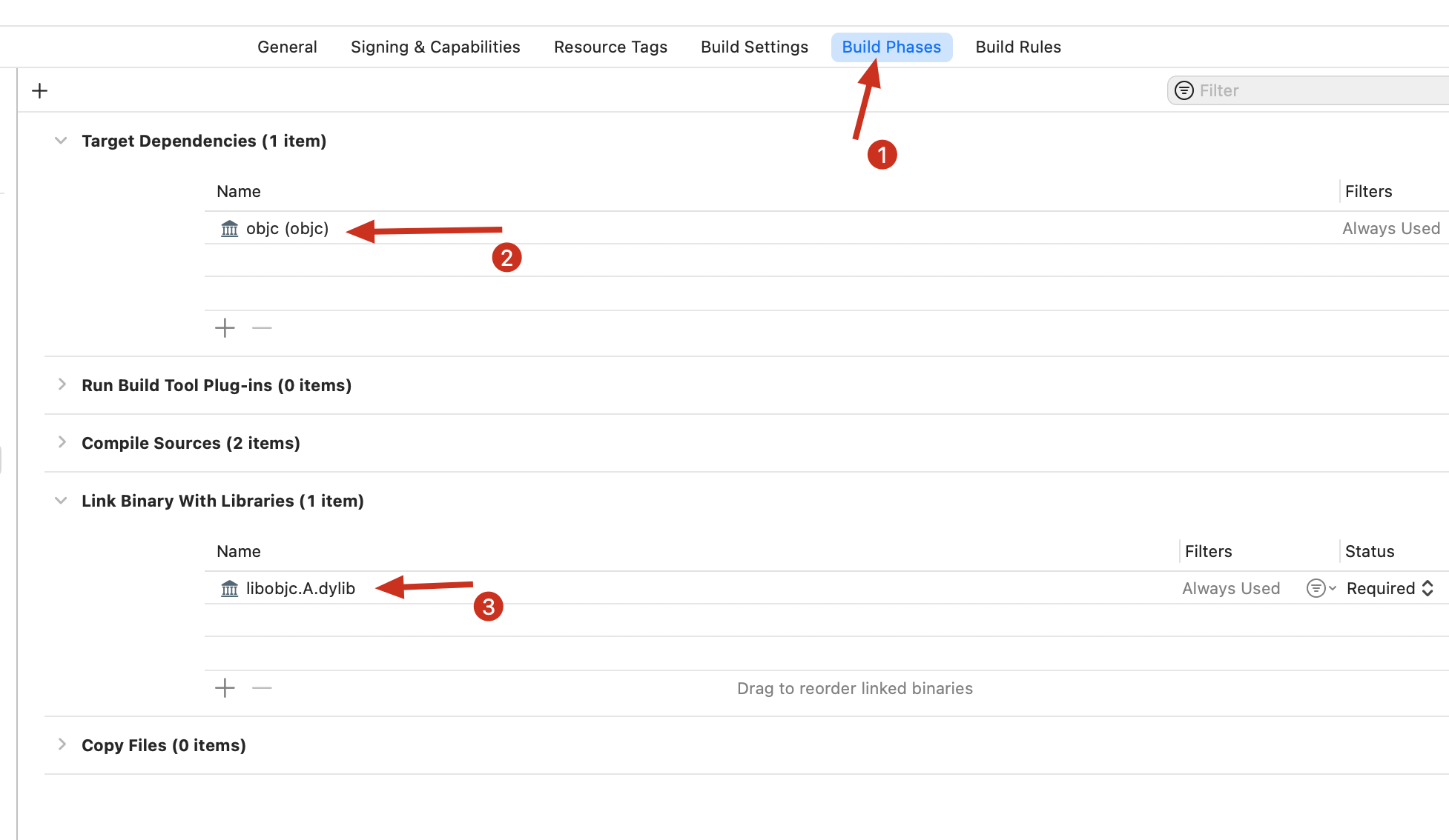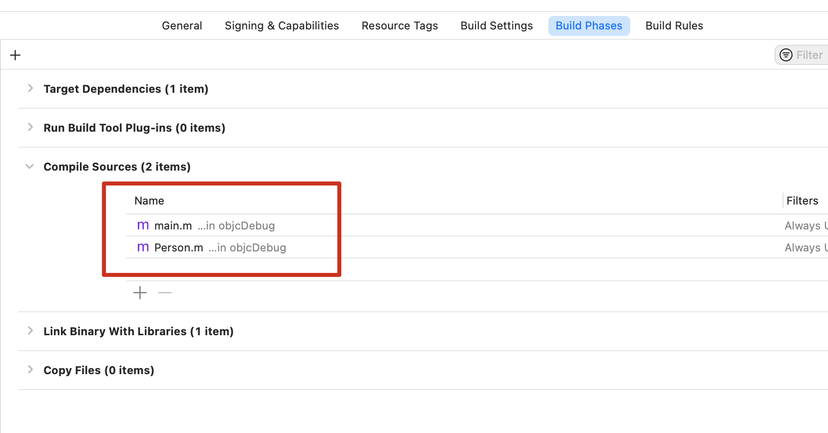 在 Build Phases 的 Compile Sources 中,将 main.m 拖到最前面