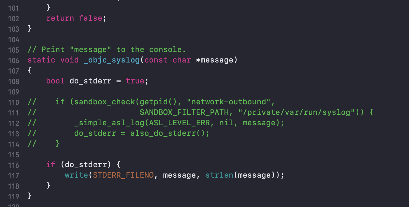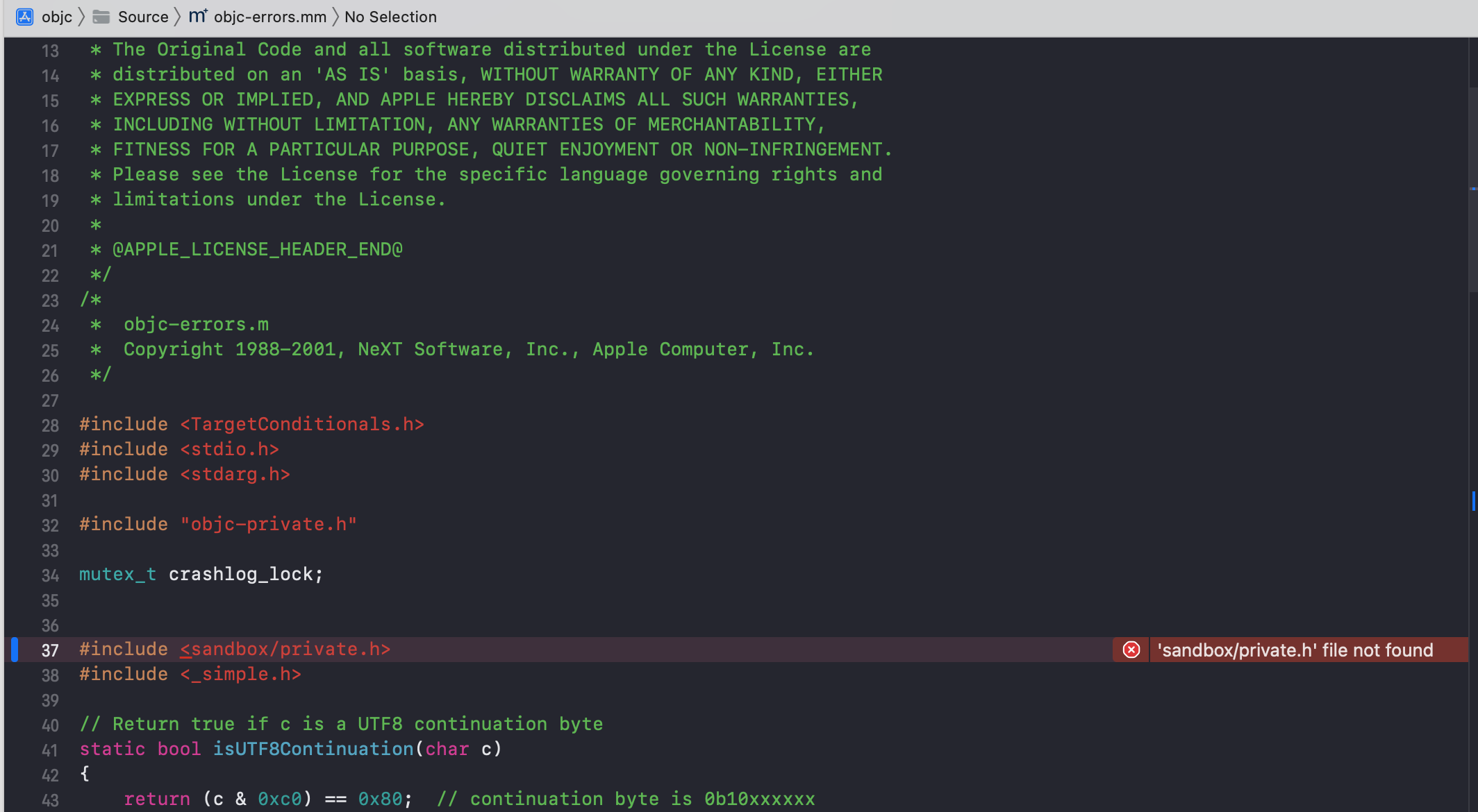 注释掉 #include <sandbox/private.h> 再编译会遇到如下错误: