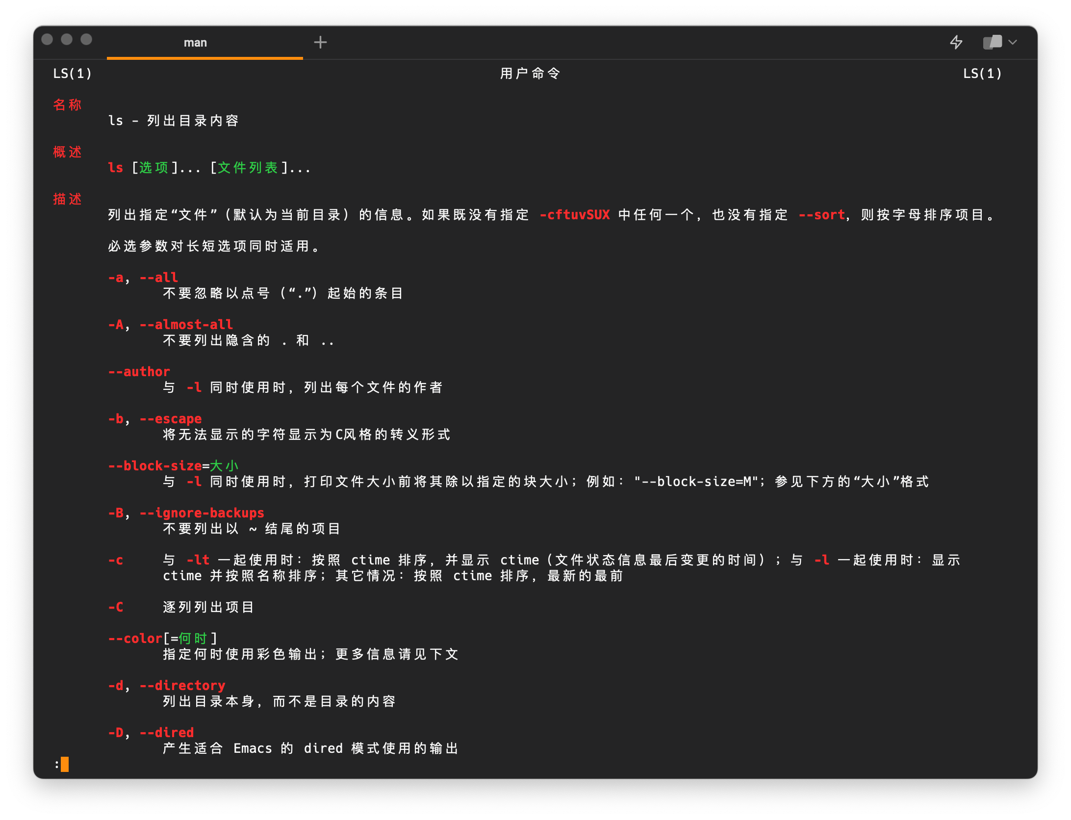 在 macOS 上,man 命令用于查看系统中安装的程序的帮助文档。然而,默认情况下,这些帮助文档都是英文的,对于不熟悉英文的用户来说可能会有些困难。幸运的是,我们可以安装 manpages-zh 来获取中文帮助文档。
